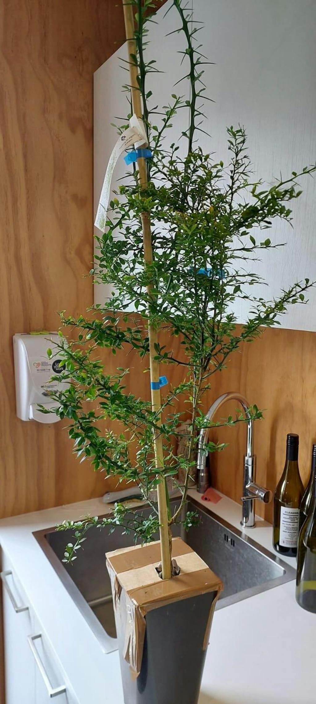 Trees that are pruned early will bush out, however if unpruned, they grow more upright. Finger limes send out long water sprouts which then become their branches, so you can easily shape the trees to how you would like them to look in the future.