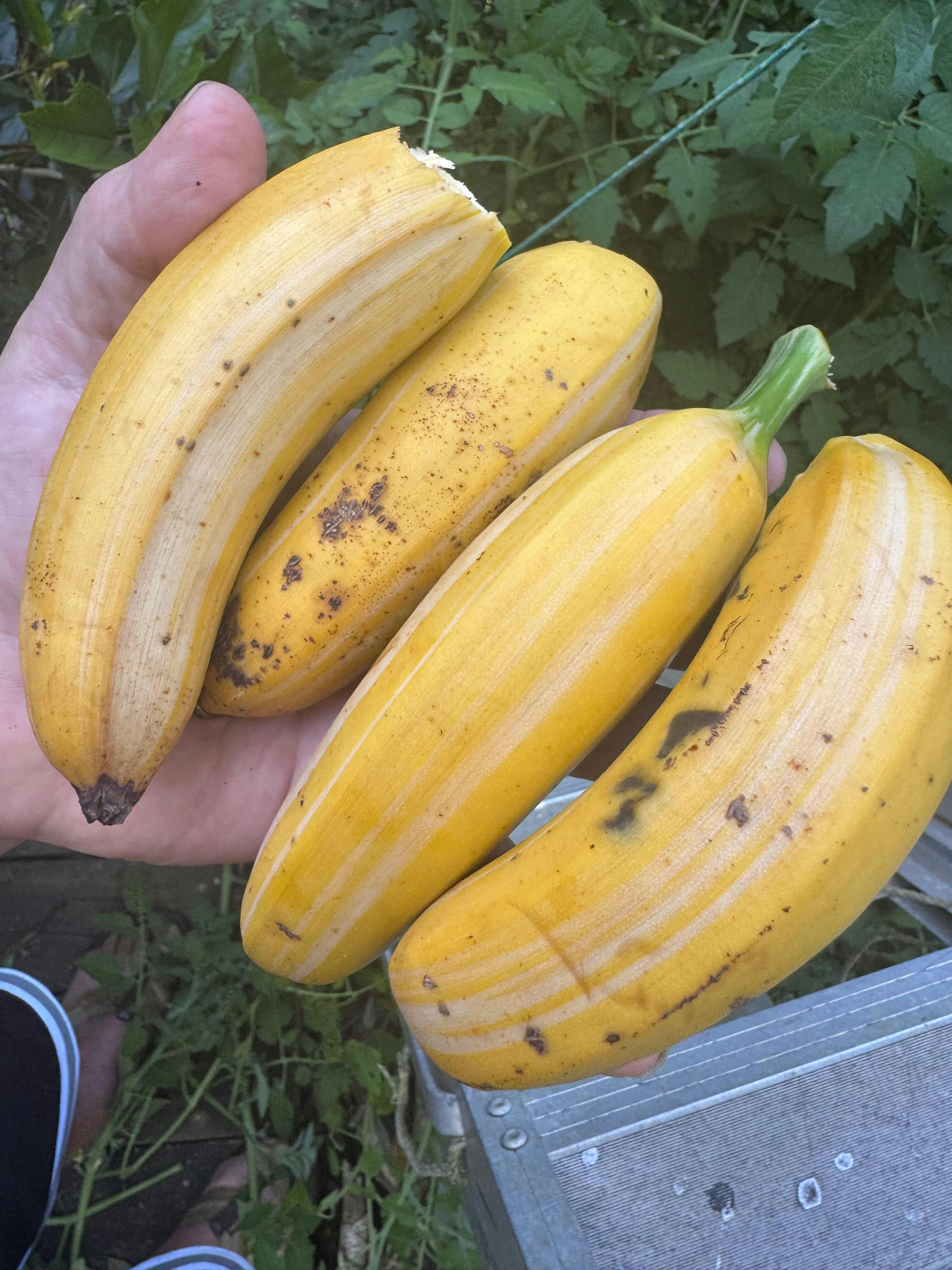 Harvesting: Bananas are typically harvested when they are fully ripe and the skin is yellow. Cut the bunch off the plant with a sharp knife and allow the fruit to ripen further at room temperature.