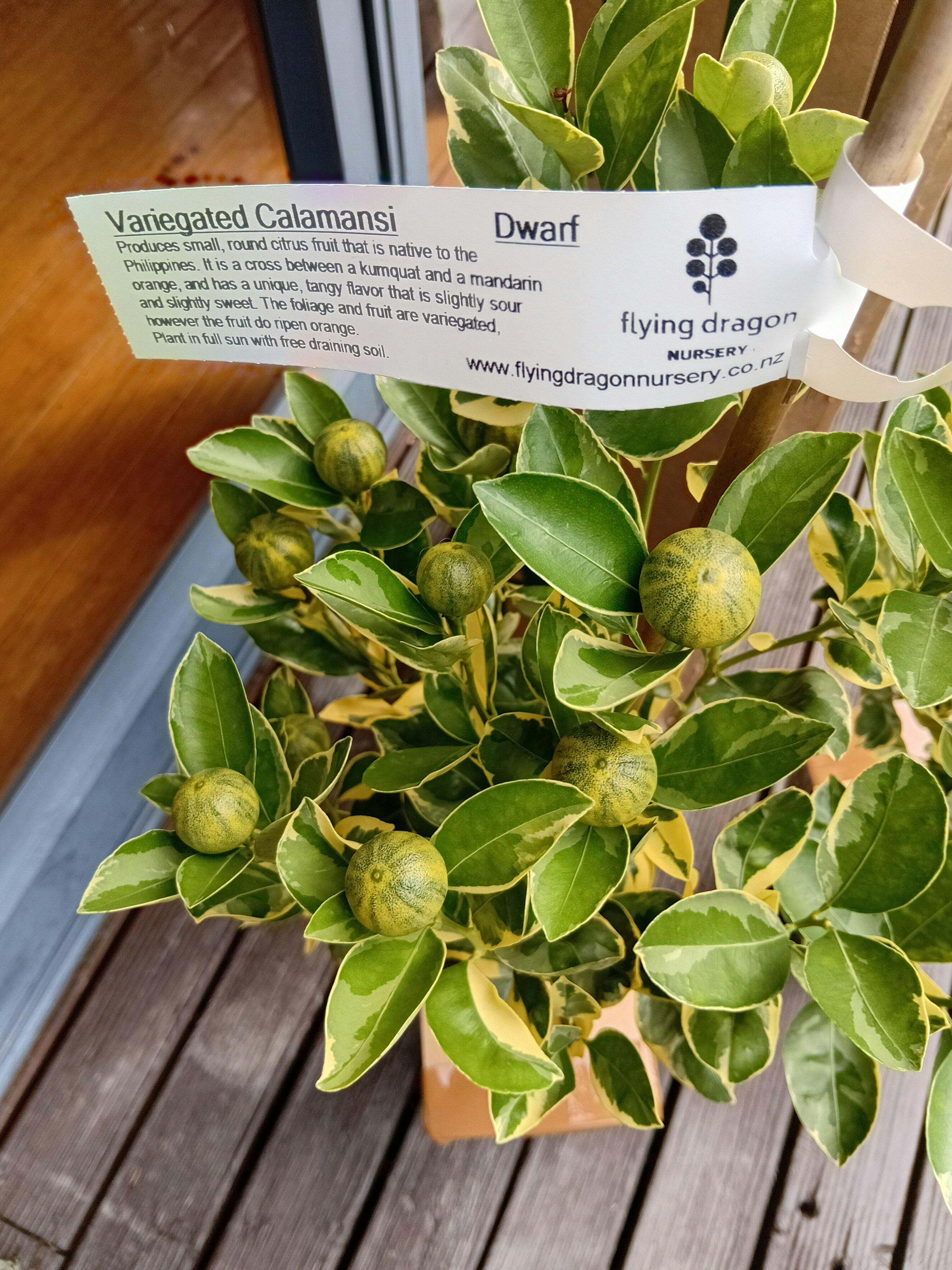 The Variegated kumquat/Calamansi offers a delightful twist on the classic citrus, boasting eye-catching variegated leaves that enhance its ornamental value. Originating from the Philippines, this compact tree produces an abundance of small, round fruits that ripen to a vibrant orange. The flesh is notably acidic and juicy, containing only a few seeds, making it ideal for culinary uses. For those who adore kumquats/Calamansi, this variety is a must-have, providing a continuous display of fragrant blossoms and ripening fruit throughout the year. Whether nestled in a pot on a sunny balcony or planted directly in the garden, this adaptable tree thrives, ensuring a steady supply of tangy treats and a visually stunning addition to any space.